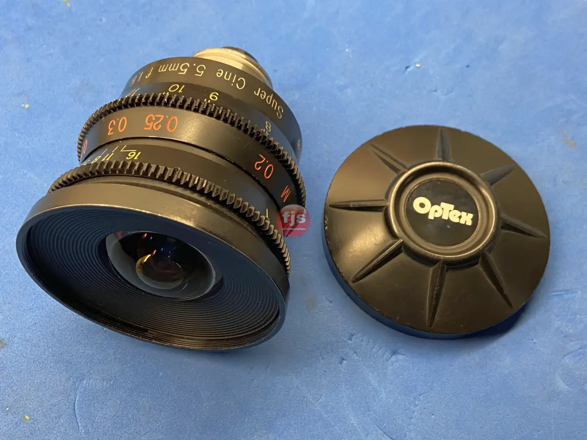 The Optex 5.5 S16 lens is an ultra-wide-angle prime lens designed for the Super 16mm film format and modern digital cameras that cover the S16 sensor size. It’s a highly regarded staple in S16 cinematography, often used for its dynamic perspective without the extreme distortion typically associated with fisheye lenses. It’s known for being one of the widest rectilinear lenses available for the format.