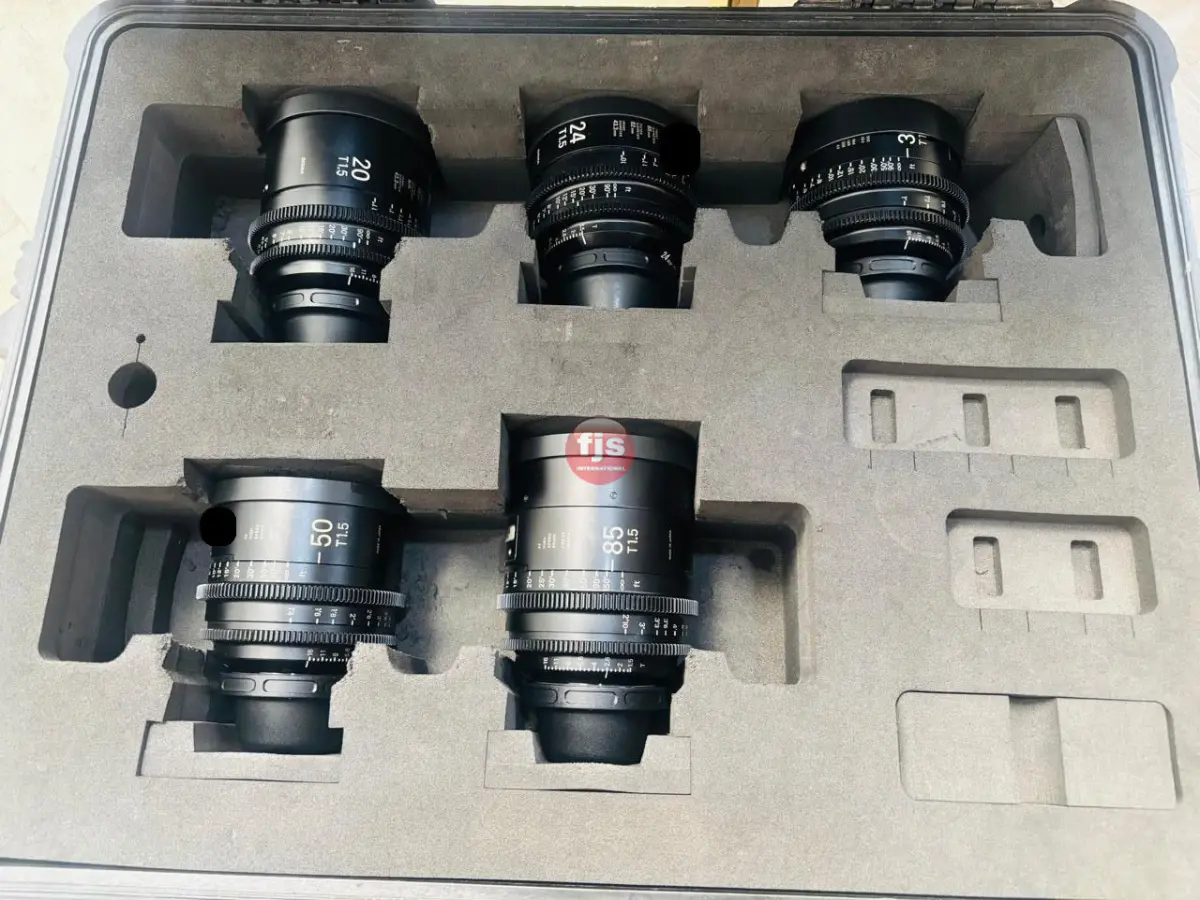This Sigma High Speed FF 5-Lens Cine Set includes 20mm, 24mm, 35mm, 50mm, and 85mm T1.5 lenses, optimized for full-frame cinema cameras. Built for high-resolution 6K–8K capture, each lens features a 95mm front diameter, clickless iris, and 0.8 MOD gearing. The set comes in a hard-shell case, with uniform color reproduction and consistent optical characteristics across all focal lengths. Ideal for narrative, commercial, and documentary productions, these lenses deliver cinematic shallow depth of field and excellent low-light performance. Their compact, durable form factor makes them suitable for handheld, gimbal, or studio workflows without sacrificing image quality.