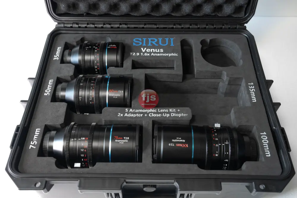 This used Sirui Venus T2.9 1.6X Anamorphic Lens Set includes four focal lengths—35mm, 50mm, 75mm, and 100mm—designed to deliver a cinematic widescreen look with classic anamorphic character. Each lens features a consistent T2.9 aperture, smooth focus and iris control, and Sirui’s signature oval bokeh and horizontal lens flares. Built for filmmakers who want a true anamorphic aesthetic without the size or cost of vintage glass, this matched set is ideal for narrative, commercial, and creative video production.