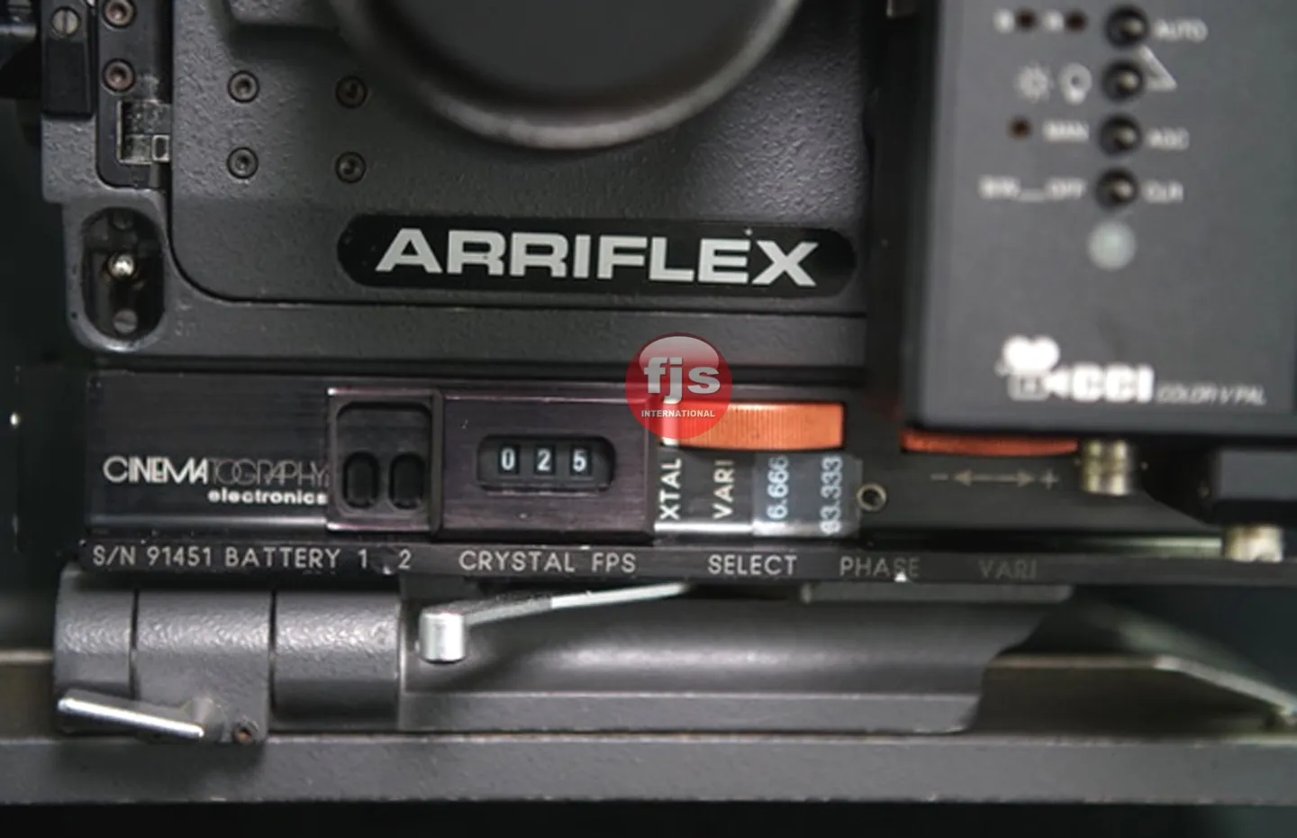 The camera has a variable shutter to the following degrees. 180,172.8,144,135,120,105,90,75,60,45,22,15 Degrees. Fitted with high speed Gate Ground Glass – 1.78:1 with Big TV Markings