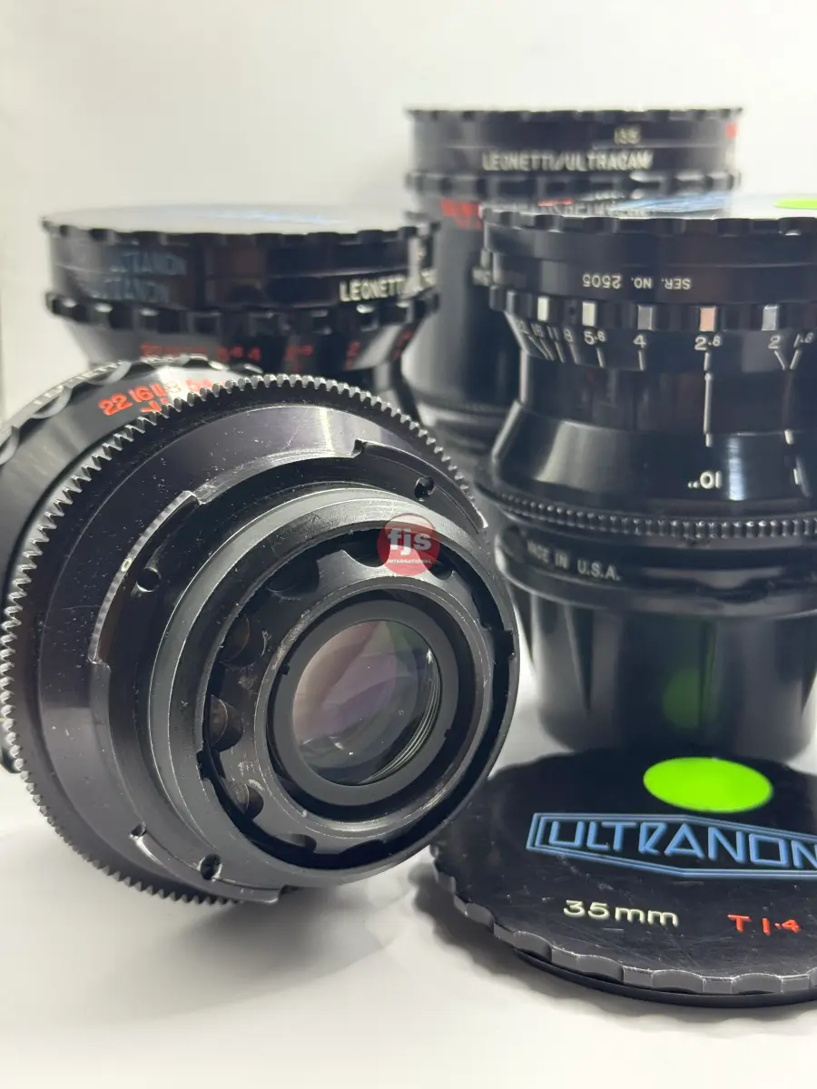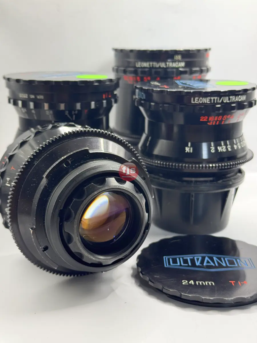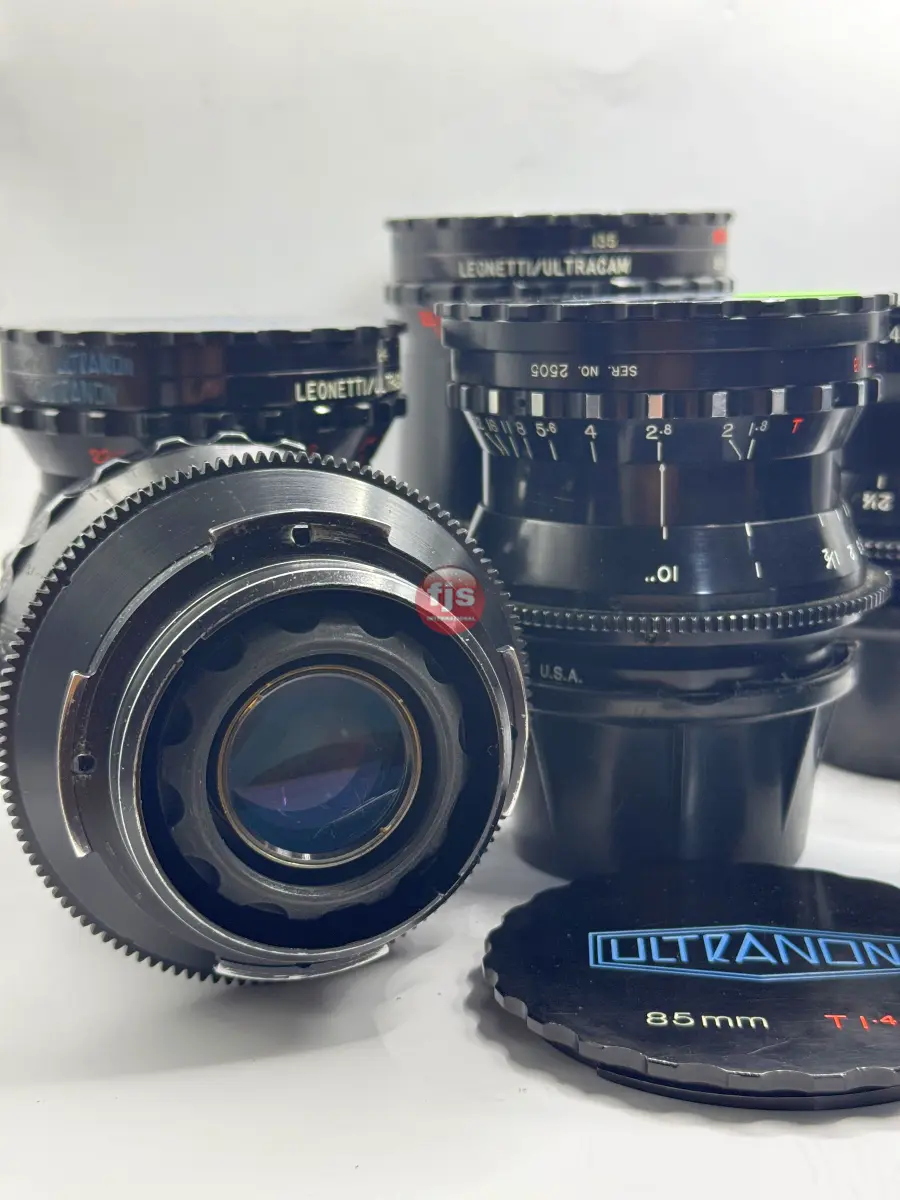 The Leonetti Ultranon lenses are a rare and storied set of vintage cinema primes, originally commissioned by Leonetti Rentals in the late 1970s and early 1980s. Designed by Kenji Suematsu for the proprietary 35mm Ultracam system, only about 15 to 20 sets were ever produced. These lenses are “franken-primes,” expertly blending optics from legendary manufacturers—primarily Contax Zeiss, with specific wide angles sourced from Cooke and Canon FD—all housed in robust, uniform cinema casings.