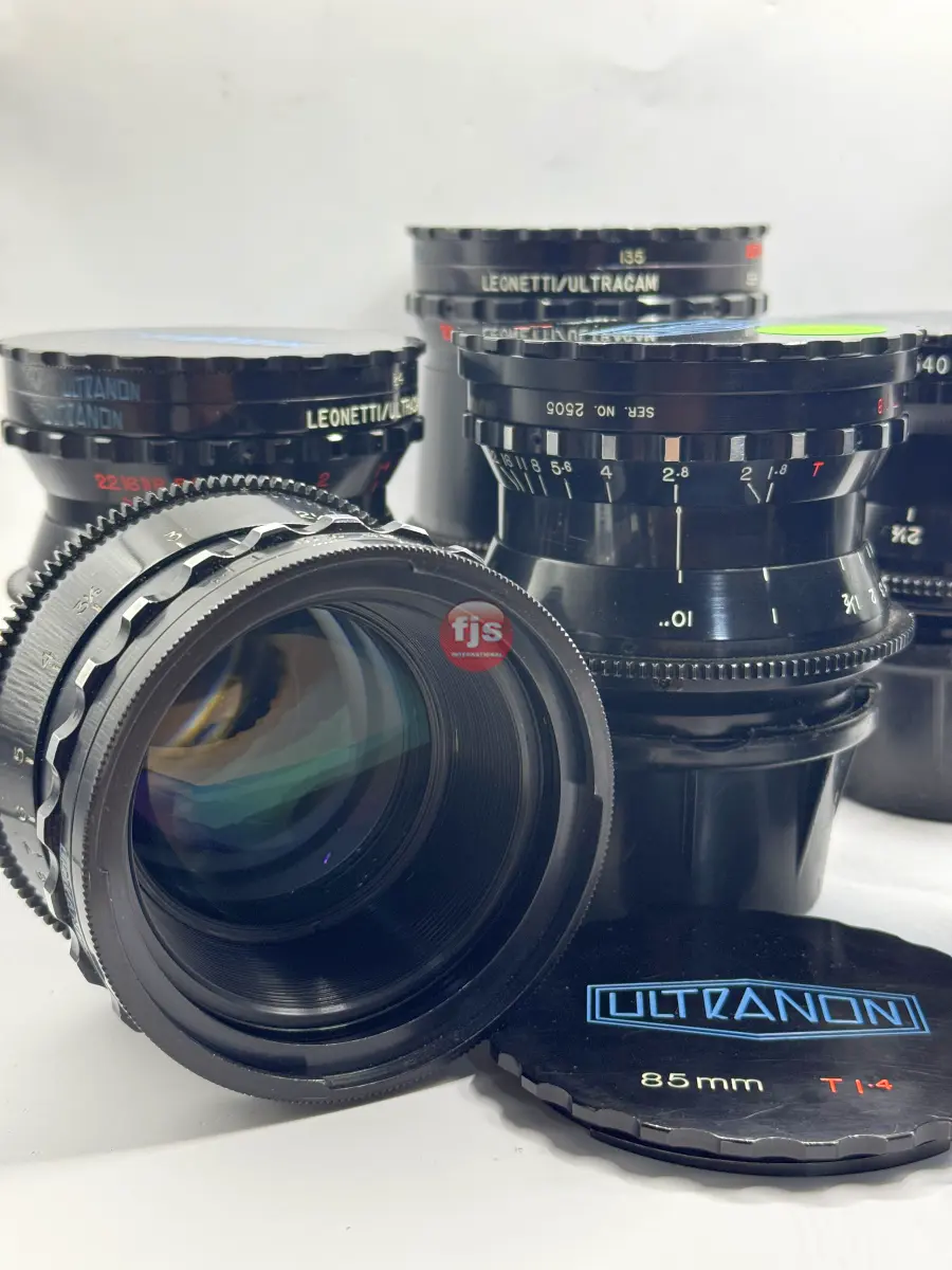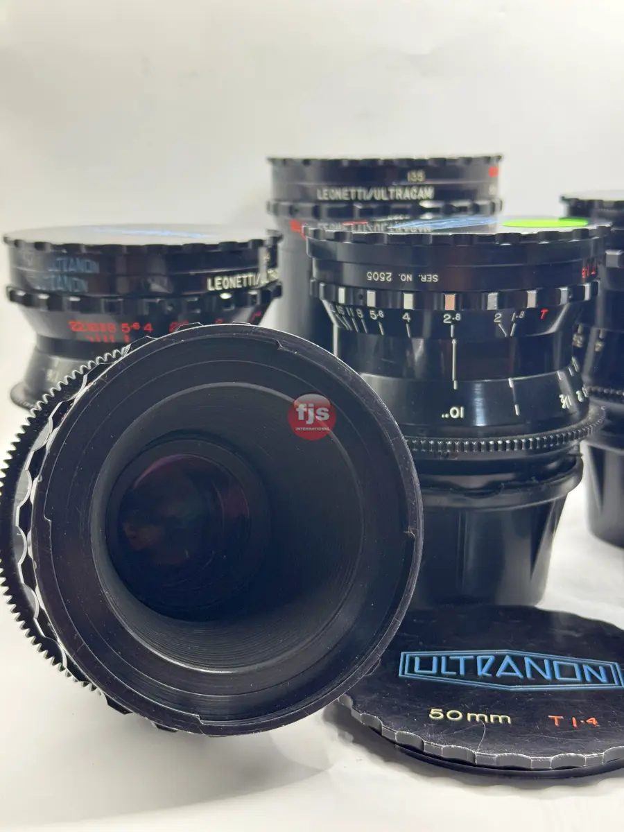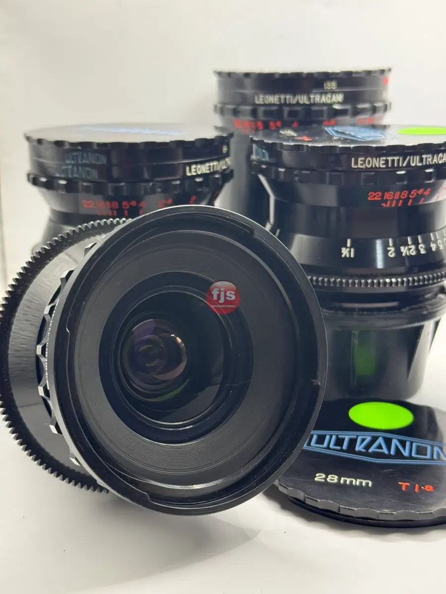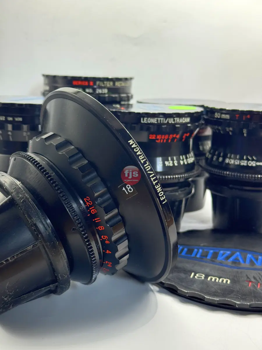 The Leonetti Ultranon lenses are a rare and storied set of vintage cinema primes, originally commissioned by Leonetti Rentals in the late 1970s and early 1980s. Designed by Kenji Suematsu for the proprietary 35mm Ultracam system, only about 15 to 20 sets were ever produced. These lenses are “franken-primes,” expertly blending optics from legendary manufacturers—primarily Contax Zeiss, with specific wide angles sourced from Cooke and Canon FD—all housed in robust, uniform cinema casings.